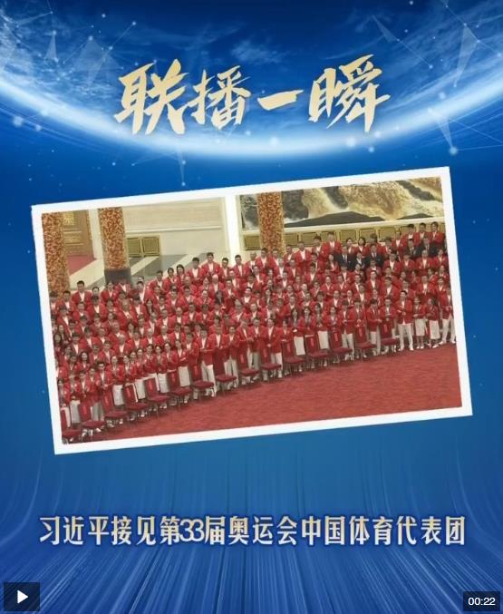 習(xí)近平20日下午在人民大會堂接見第33屆夏季奧林匹克運動會中國體育代表團全體成員。