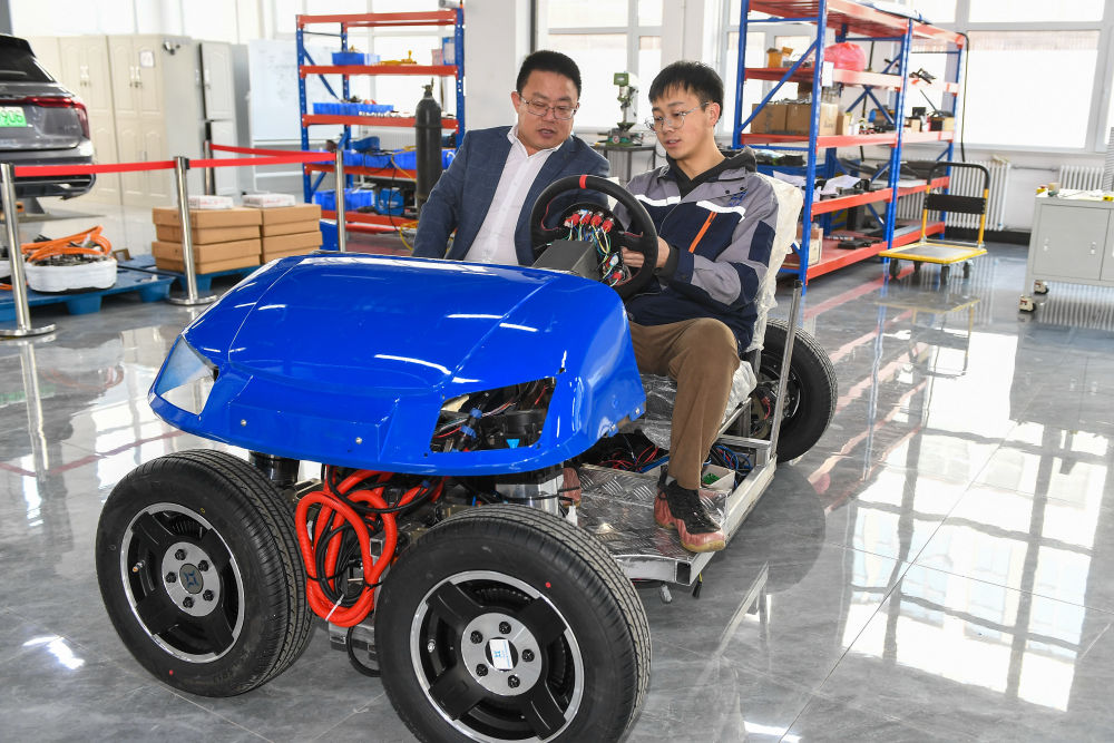 2024年3月13日,在吉林長(zhǎng)春一家汽車(chē)科技企業(yè),吉林大學(xué)汽車(chē)工程學(xué)院教授靳立強(qiáng)(左)試乘智能底盤(pán)樣車(chē)。2023年,長(zhǎng)春市科技局和吉林大學(xué)共建吉林大學(xué)概念驗(yàn)證中心,一手對(duì)接高校,一手對(duì)接企業(yè),確保科研成果在技術(shù)路線和商業(yè)模式上的可行性,實(shí)現(xiàn)“從0到1”的轉(zhuǎn)化。