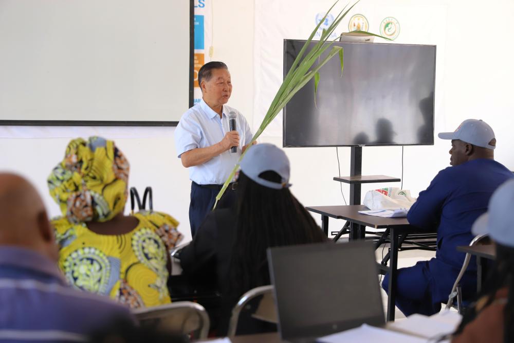 8月4日,在盧旺達南方省胡耶區(qū),林占熺為非洲地區(qū)菌草技術(shù)培訓(xùn)班授課。新華社發(fā)(黃萬晴攝)