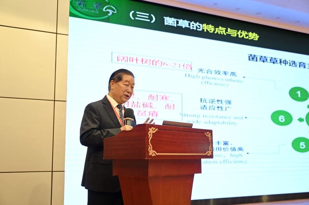 6月16日,第十九屆國際菌草產(chǎn)業(yè)發(fā)展研討會在福建福州舉行,國家菌草工程技術(shù)研究中心首席科學(xué)家林占熺發(fā)表《菌草技術(shù)助力落實聯(lián)合國可持續(xù)發(fā)展目標的潛力》主旨報告。新華社記者 林善傳 攝