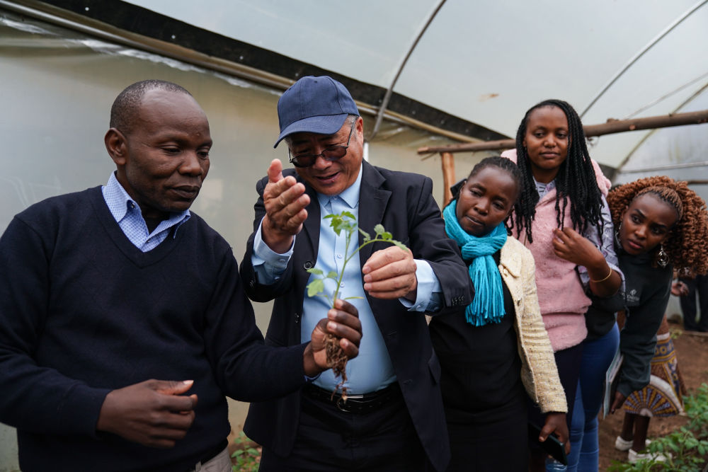 2023年9月18日,在肯尼亞納庫魯郡舉辦的中非農(nóng)業(yè)發(fā)展和減貧示范村番茄生產(chǎn)培訓班上,來自中國的農(nóng)學教授劉高瓊(左二)為肯方學員指導農(nóng)業(yè)技術(shù)。多年來,中國農(nóng)業(yè)專家在當?shù)亻_展了知識培訓、技術(shù)指導和農(nóng)業(yè)設(shè)施修繕等工作,有效助力中國先進的農(nóng)業(yè)技術(shù)在納庫魯?shù)貐^(qū)的示范推廣,幫助農(nóng)民實現(xiàn)增收減貧的目標。