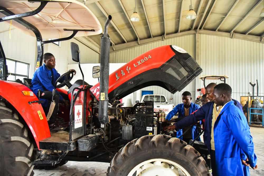 2023年1月12日,學生在喀麥隆亞巴西農(nóng)業(yè)職業(yè)技術(shù)中學上拖拉機實踐課。亞巴西農(nóng)業(yè)職業(yè)技術(shù)中學由中方援建,是喀麥隆第一所農(nóng)業(yè)技術(shù)學校。新華社發(fā)(科普索攝)