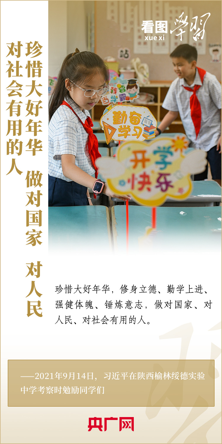 “少年兒童是祖國(guó)的未來(lái)。”一直以來(lái),習(xí)近平總書記高度重視和關(guān)心青少年的健康成長(zhǎng)。每每走到校園和學(xué)生們中間,總書記總會(huì)與他們談學(xué)習(xí)、談理想、談成長(zhǎng),鼓勵(lì)他們努力為自己贏得人生出彩的機(jī)會(huì),做對(duì)國(guó)家、對(duì)人民、對(duì)社會(huì)有用的人。又是一年開(kāi)學(xué)季,讓我們一起重溫總書記對(duì)莘莘學(xué)子的殷切期望。一起來(lái)學(xué)習(xí)!