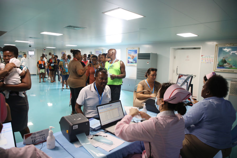 2024年8月12日,中國(guó)海軍“和平方舟”號(hào)醫(yī)院船在莫桑比克馬普托開(kāi)展醫(yī)療服務(wù)。