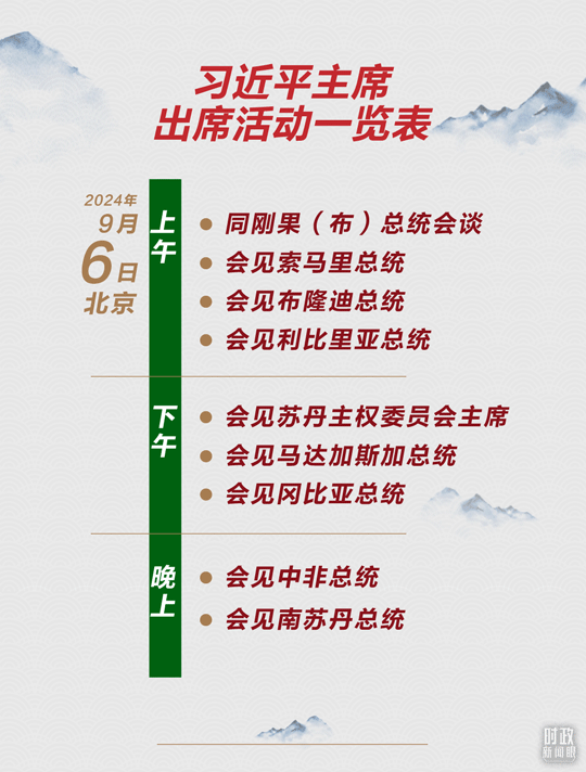 當(dāng)天,習(xí)主席接連同9位非洲國家領(lǐng)導(dǎo)人會(huì)晤,發(fā)出積極落實(shí)峰會(huì)成果的鮮明信號(hào)。5天時(shí)間,42場(chǎng)會(huì)晤,“大國會(huì)客廳”見證中非友誼歷久彌新。