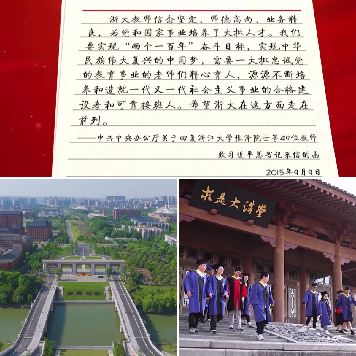 2015年9月9日,教師節(jié)前一天,浙江大學的49位老師收到了一份特殊的教師節(jié)禮物,習近平總書記特別囑咐中共中央辦公廳,發(fā)來了關(guān)于回復(fù)49位老師來信的函。