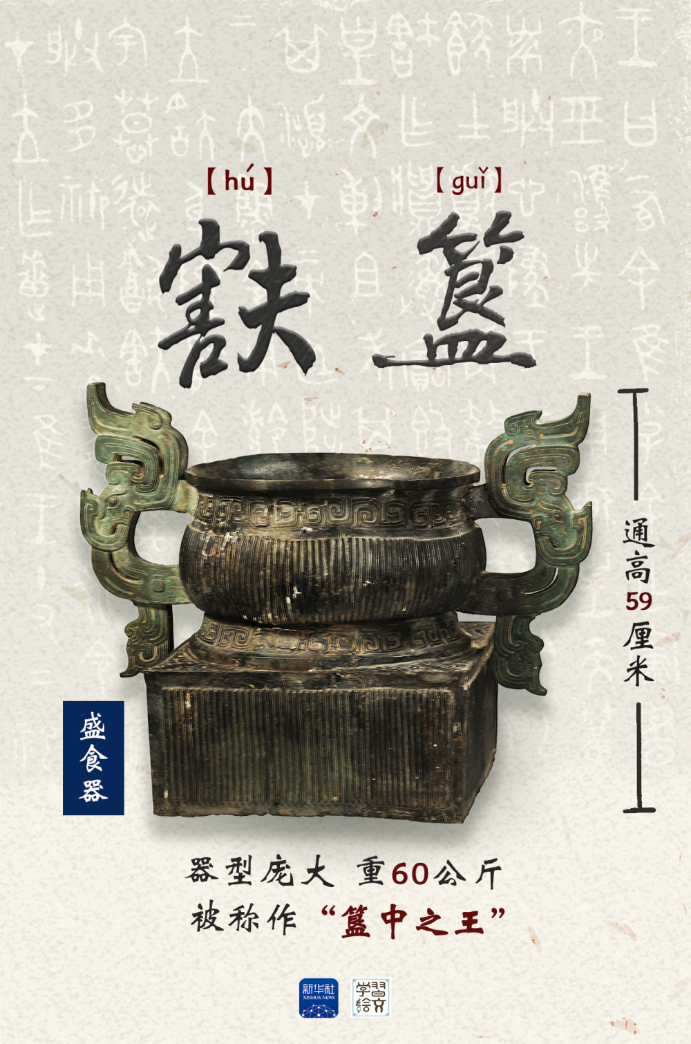 現(xiàn)展出于寶雞青銅器博物院的?簋號(hào)稱“簋中之王”。圓形簋身與方形底座相連,簋內(nèi)鑄有銘文124字,由此得知它是西周第十位天子周厲王姬?為祭祀先祖、祈神降福而作。
