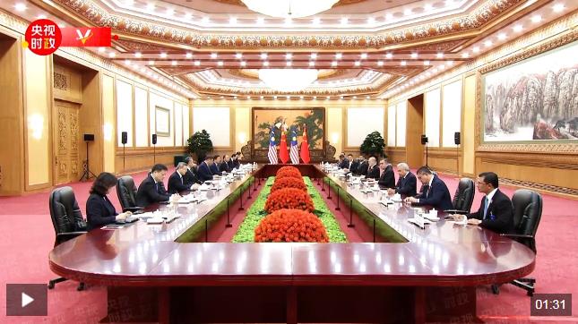 9月20日下午,國家主席習近平在北京人民大會堂同來華進行國事訪問的馬來西亞最高元首易卜拉欣舉行會談。