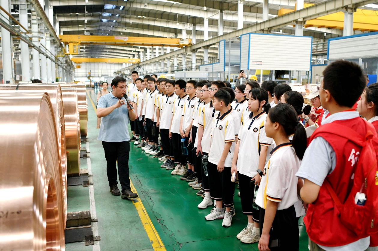 在安徽銅陵,銅陵七中的老師們把思政課搬進制造車間,帶領(lǐng)同學(xué)們“沉浸式”體驗高科技銅產(chǎn)品生產(chǎn)流程,近距離感受中國制造業(yè)和家鄉(xiāng)銅工業(yè)的蓬勃發(fā)展歷程。