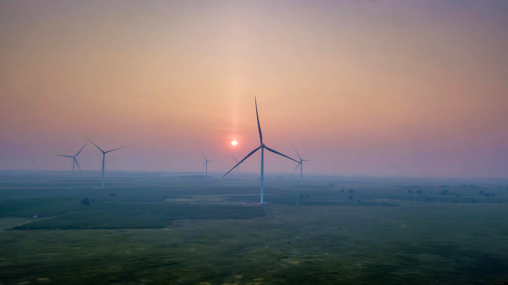 科爾沁大草原上,牛羊健碩。藍天白云下,一排排巨型“風(fēng)車”緩緩旋轉(zhuǎn),在古老草原上勾勒出現(xiàn)代的“天際線”。這里是內(nèi)蒙古通遼市238萬千瓦風(fēng)電基地。