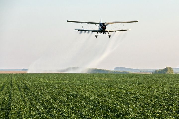 在北大荒集團黑龍江五大連池農場有限公司大豆地塊,農用飛機在進行“一噴多促”作業(yè)(2024年8月20日攝)。新華社發(fā)(陸文祥攝)