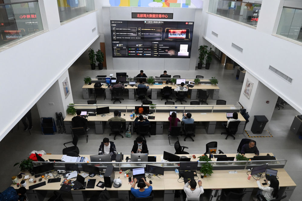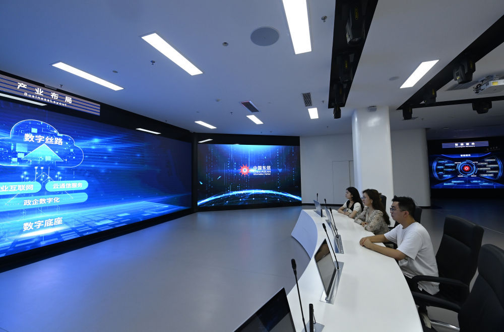 2023年12月12日拍攝的中國-東盟信息港股份有限公司內景。歷經多年建設,中國-東盟信息港正努力打造面向東盟的國際通信大通道、大數據資源應用服務大樞紐、新一代信息技術應用示范高地、數字經濟開放合作集聚區(qū)和人文交流合作中心。