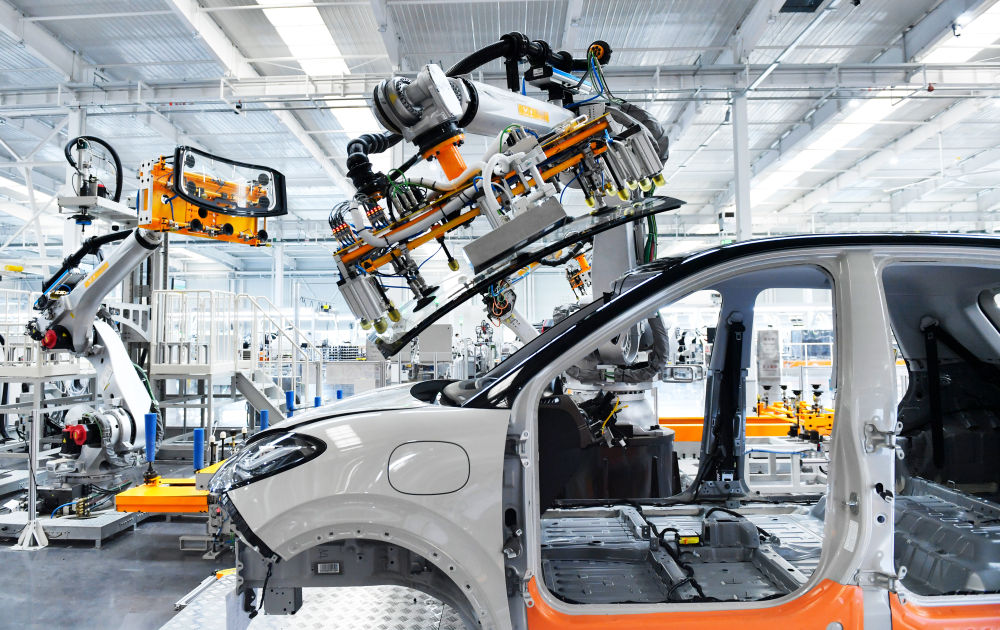 在廣西柳州市上汽通用五菱精益智造工廠,機器人為汽車裝配擋風玻璃(2024年5月9日攝)。上汽通用五菱建成的“柳州研發(fā)和零部件生產—印尼整車組裝和市場銷售”產業(yè)鏈,是中國與東盟國家不斷深化投資和產能合作的生動縮影。