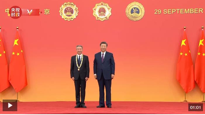 中華人民共和國國家勛章和國家榮譽稱號頒授儀式9月29日上午10時在人民大會堂隆重舉行。中共中央總書記、國家主席、中央軍委主席習(xí)近平向“人民工匠”國家榮譽稱號獲得者許振超頒授獎?wù)隆?/p>