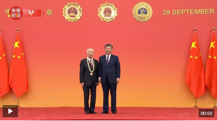 中華人民共和國(guó)國(guó)家勛章和國(guó)家榮譽(yù)稱(chēng)號(hào)頒授儀式9月29日上午10時(shí)在人民大會(huì)堂隆重舉行。中共中央總書(shū)記、國(guó)家主席、中央軍委主席習(xí)近平向“體育工作杰出貢獻(xiàn)者”國(guó)家榮譽(yù)稱(chēng)號(hào)獲得者張燮林頒授獎(jiǎng)?wù)隆?/p>