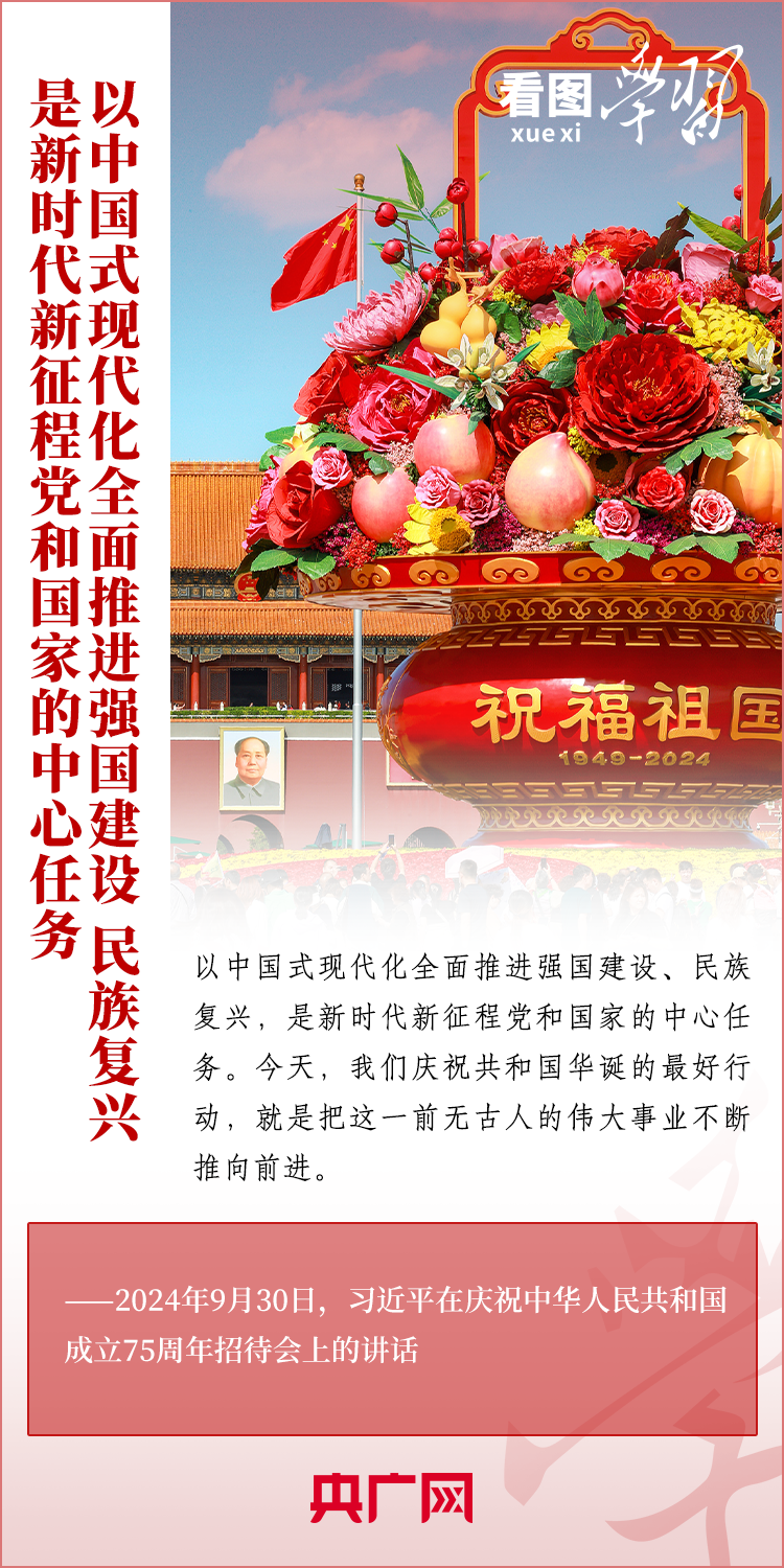 “經(jīng)過75年的艱苦奮斗,中國式現(xiàn)代化已經(jīng)展開壯美畫卷并呈現(xiàn)出無比光明燦爛的前景?!?月30日,慶祝中華人民共和國成立75周年招待會在京舉行。習(xí)近平總書記出席招待會并發(fā)表重要講話。總書記強調(diào),以中國式現(xiàn)代化全面推進(jìn)強國建設(shè)、民族復(fù)興,是新時代新征程黨和國家的中心任務(wù)。我們慶祝共和國華誕的最好行動,就是把這一前無古人的偉大事業(yè)不斷推向前進(jìn)。