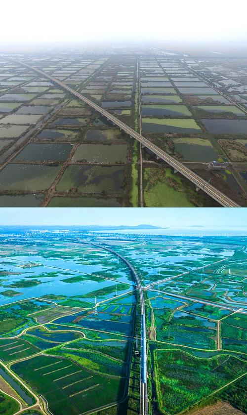 拼版圖片:圖為2015年和2023年十八聯(lián)圩的前后對(duì)比,此前是高密度養(yǎng)殖的漁場(chǎng),如今已是連片濕地。受訪者供圖 制作:賈稀荃