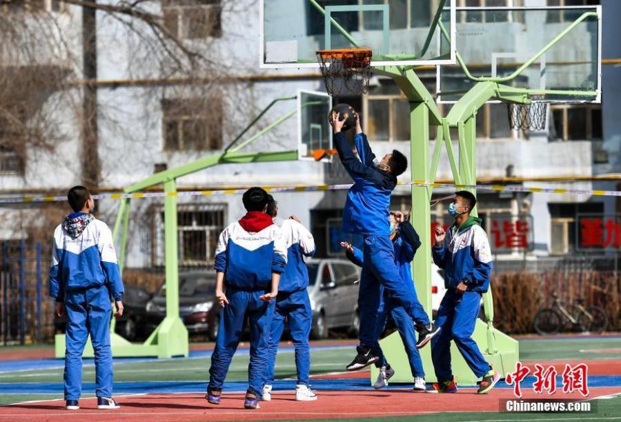資料圖:初中生在課間休息時打籃球。中新社記者 劉新 攝