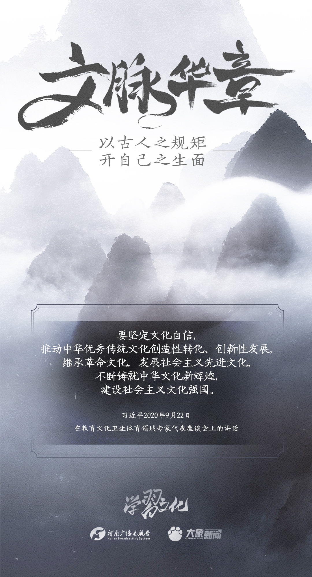 2014年10月15日,習(xí)近平總書記在文藝工作座談會(huì)上的重要講話指出:傳承中華文化,絕不是簡(jiǎn)單復(fù)古,也不是盲目排外,而是古為今用、洋為中用,辯證取舍、推陳出新,摒棄消極因素,繼承積極思想,“以古人之規(guī)矩,開自己之生面”,實(shí)現(xiàn)中華文化的創(chuàng)造性轉(zhuǎn)化和創(chuàng)新性發(fā)展。
