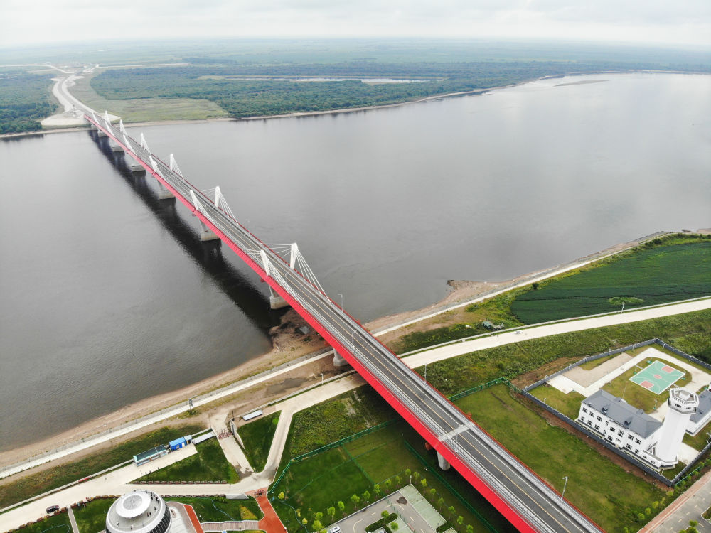 這是在中國(guó)黑河一側(cè)拍攝的黑河-布拉戈維申斯克公路橋(2023年8月11日攝,無(wú)人機(jī)照片)。2022年6月10日,這座中俄首座跨黑龍江公路大橋正式通車(chē),在中國(guó)東北地區(qū)和俄羅斯遠(yuǎn)東地區(qū)之間開(kāi)辟了新的國(guó)際運(yùn)輸通道。