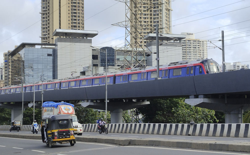 這是在印度孟買(mǎi)北部已開(kāi)通運(yùn)行路段拍攝的地鐵列車(chē)(2022年6月22日攝)。新開(kāi)發(fā)銀行向印度孟買(mǎi)北部地鐵項(xiàng)目提供了貸款,項(xiàng)目第一部分已于2022年4月開(kāi)通運(yùn)營(yíng),緩解了沿線地區(qū)的城市交通壓力。新華社發(fā)(阿西夫攝)