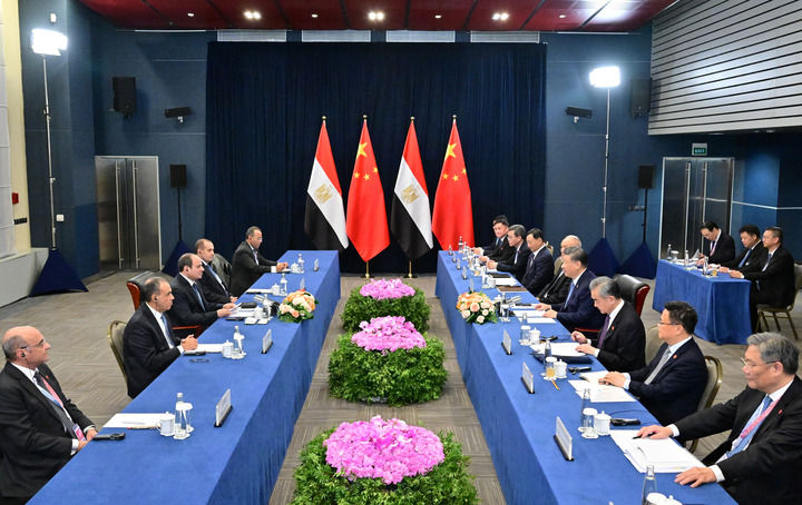習近平祝賀并歡迎埃及首次作為正式成員參加金磚國家領(lǐng)導人會晤。習近平指出,今年是“中埃伙伴年”和兩國建立全面戰(zhàn)略伙伴關(guān)系10周年。中方堅定支持埃及維護國家主權(quán)、安全、發(fā)展利益,愿同埃方做守望相助的真誠朋友、攜手發(fā)展的親密伙伴。雙方要繼續(xù)堅定相互支持,鞏固政治互信,深化務實合作,高質(zhì)量共建“一帶一路”,密切人文交流,推動雙邊關(guān)系朝著構(gòu)建面向新時代的中埃命運共同體目標持續(xù)邁進。中方也愿同埃方加強協(xié)調(diào),推動“大金磚合作”行穩(wěn)致遠,進一步提升全球南方影響力和發(fā)言權(quán),維護發(fā)展中國家共同利益。