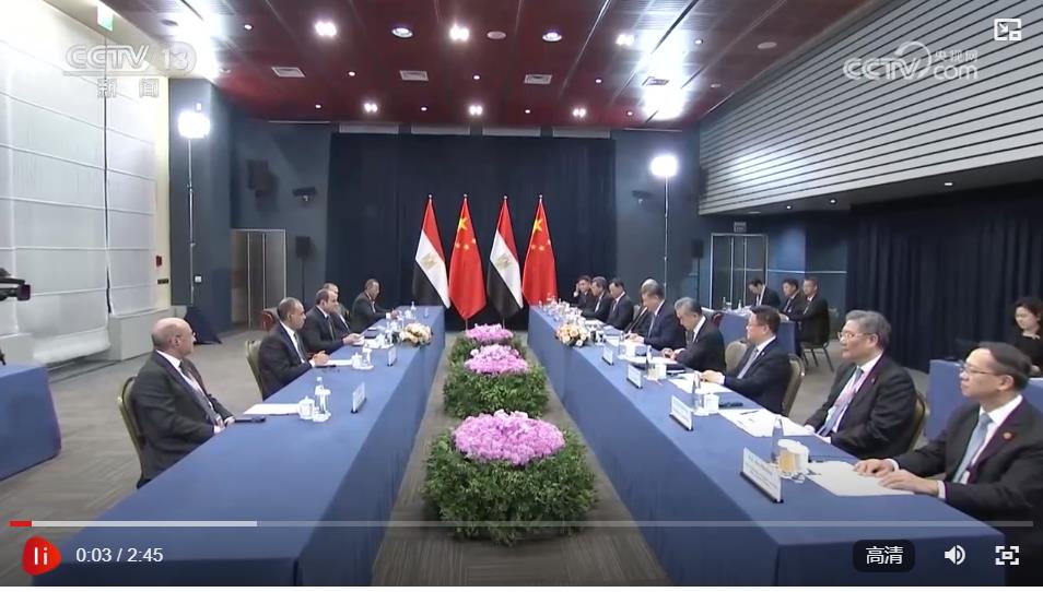 習(xí)近平祝賀并歡迎埃及首次作為正式成員參加金磚國(guó)家領(lǐng)導(dǎo)人會(huì)晤。習(xí)近平指出,今年是“中埃伙伴年”和兩國(guó)建立全面戰(zhàn)略伙伴關(guān)系10周年。中方堅(jiān)定支持埃及維護(hù)國(guó)家主權(quán)、安全、發(fā)展利益,愿同埃方做守望相助的真誠(chéng)朋友、攜手發(fā)展的親密伙伴。雙方要繼續(xù)堅(jiān)定相互支持,鞏固政治互信,深化務(wù)實(shí)合作,高質(zhì)量共建“一帶一路”,密切人文交流,推動(dòng)雙邊關(guān)系朝著構(gòu)建面向新時(shí)代的中埃命運(yùn)共同體目標(biāo)持續(xù)邁進(jìn)。中方也愿同埃方加強(qiáng)協(xié)調(diào),推動(dòng)“大金磚合作”行穩(wěn)致遠(yuǎn),進(jìn)一步提升全球南方影響力和發(fā)言權(quán),維護(hù)發(fā)展中國(guó)家共同利益。