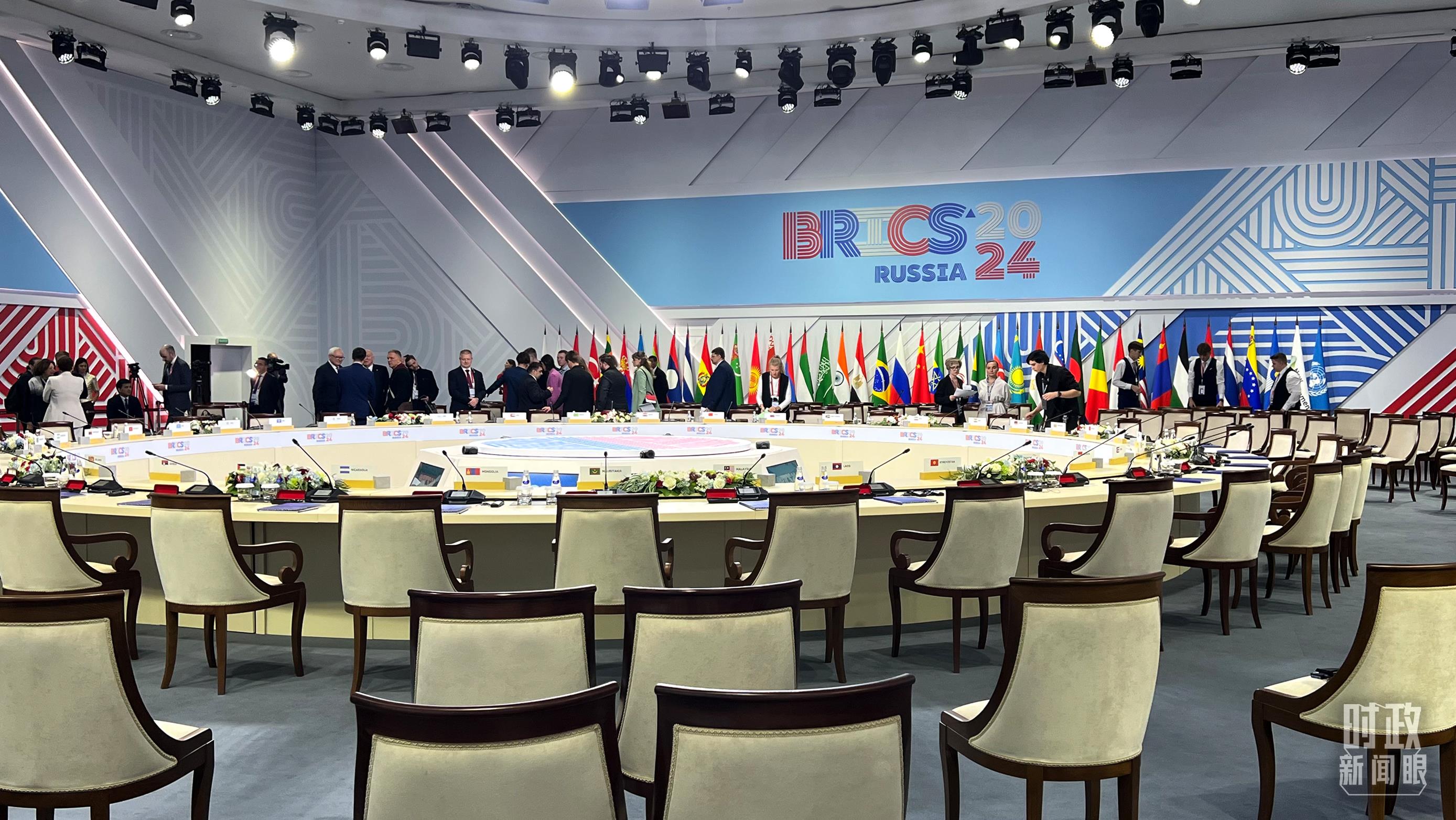 △今年“金磚+”領(lǐng)導(dǎo)人對(duì)話會(huì)在喀山會(huì)展中心舉行,這是對(duì)話會(huì)開(kāi)始前的現(xiàn)場(chǎng)。(總臺(tái)央視記者程鋮拍攝)