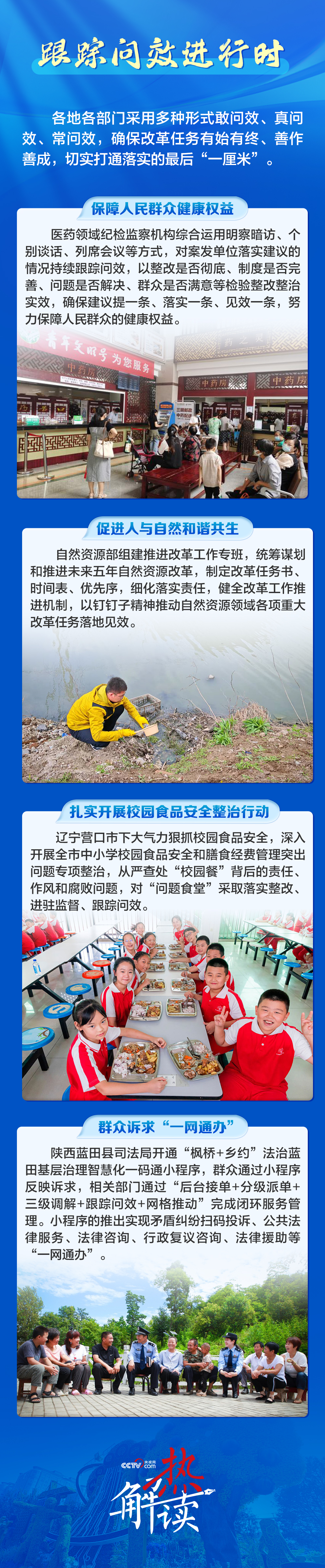 今年7月,在黨的二十屆三中全會(huì)第二次全體會(huì)議上,習(xí)近平總書記進(jìn)一步提出,要強(qiáng)化跟蹤問效,深入查找存在的問題和原因,及時(shí)推動(dòng)整改。
