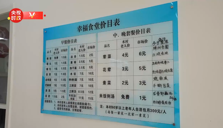△ 養(yǎng)老服務(wù)驛站幸福食堂價(jià)目表 視頻截圖