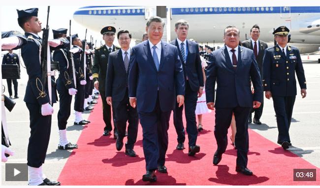 習(xí)近平發(fā)表機場書面講話,向秘魯政府和秘魯人民致以誠摯問候和良好祝愿。