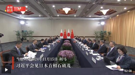 當?shù)貢r間11月15日,國家主席習近平在利馬出席亞太經(jīng)合組織領導人非正式會議期間會見日本首相石破茂。