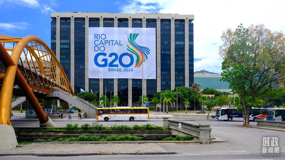 巴西里約熱內(nèi)盧街頭的G20標(biāo)識(shí)。(總臺(tái)央視記者曹亞星拍攝)