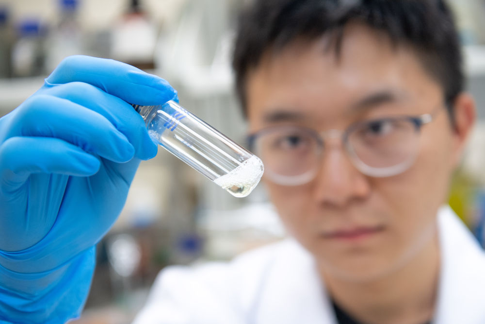 2019年11月1日,在中藥質(zhì)量研究國家重點(diǎn)實(shí)驗(yàn)室(澳門大學(xué)),學(xué)生觀察藥物樣品的溶解狀態(tài)。