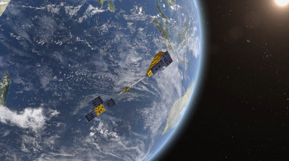 “澳科一號”衛(wèi)星在軌示意圖(右為A星,左為B星)。圖片由澳門科技大學(xué)“澳科一號”團(tuán)隊提供