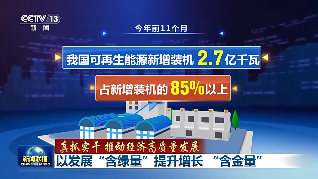 中國電力企業(yè)聯(lián)合會的最新數(shù)據(jù)顯示,今年前11個月,我國可再生能源新增裝機(jī)2.7億千瓦,占新增裝機(jī)的85%以上;到11月底,我國風(fēng)電和太陽能發(fā)電裝機(jī)占比首次超過四成,裝機(jī)規(guī)模已超過煤電,提前6年多完成我國在氣候雄心峰會上對世界的承諾。