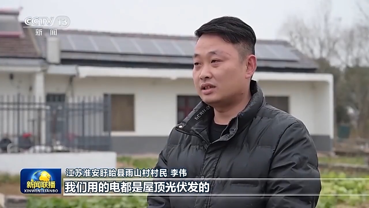 江蘇淮安盱眙縣雨山村村民 李偉:我們用的電都是屋頂光伏發(fā)的,不僅家里可以用,還能給電動汽車充電。綠色環(huán)保,還能帶來收益。