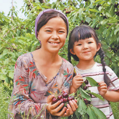在中塔合建的吉薩爾櫻桃園,當(dāng)?shù)匦∨⒄故緞傉碌臋烟?。本報記?顏歡攝