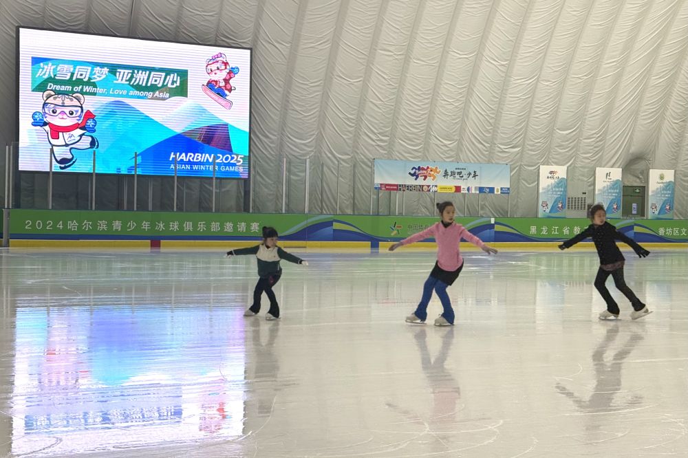1月7日,位于哈爾濱香坊區(qū)的名將氣膜冰上運(yùn)動(dòng)中心吸引青少年上冰訓(xùn)練。新華社記者 楊思琪 攝
