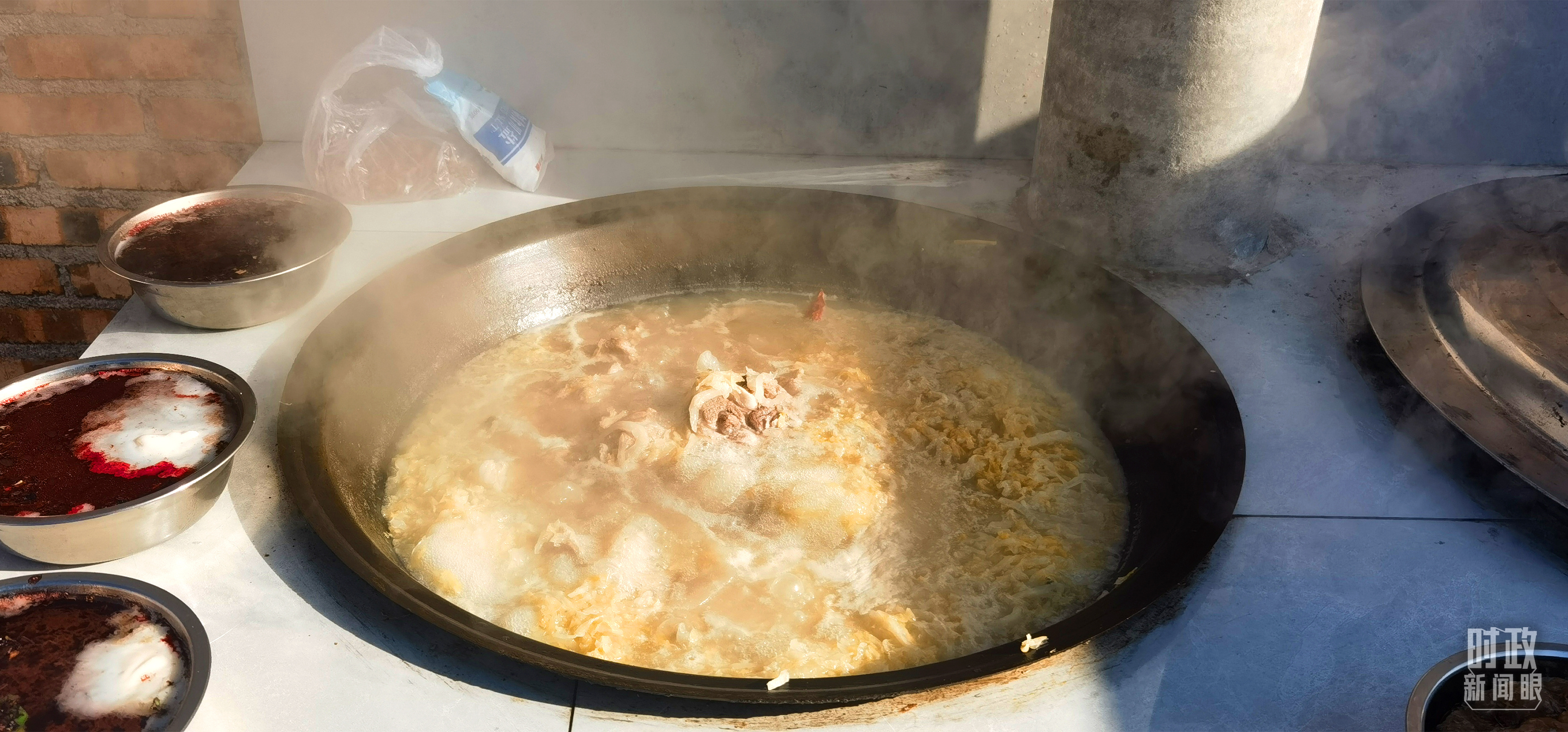 村民王寶維一家,早早為過年做好了準備。院子里的儲物缸裝得滿滿當當,東北特色的殺豬菜熱氣騰騰。農(nóng)歷小年前,在外務工的大兒子一家也回到家中。一家十口包餃子、蒸豆包,滿是過年的喜慶。