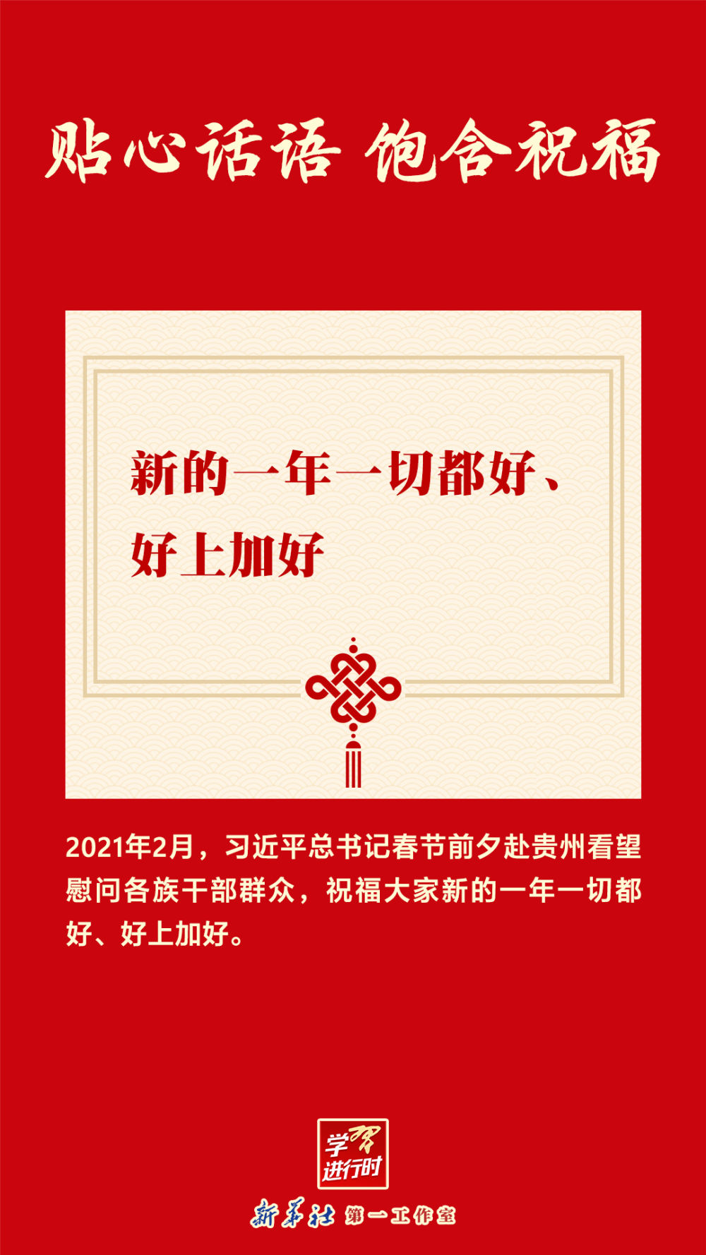 【學(xué)習(xí)進(jìn)行時】拜年是喜慶的年俗之一。互道一聲過年好,傳遞濃濃親情、友情、同志情。習(xí)近平總書記的貼心話語,充滿溫暖,飽含祝福。