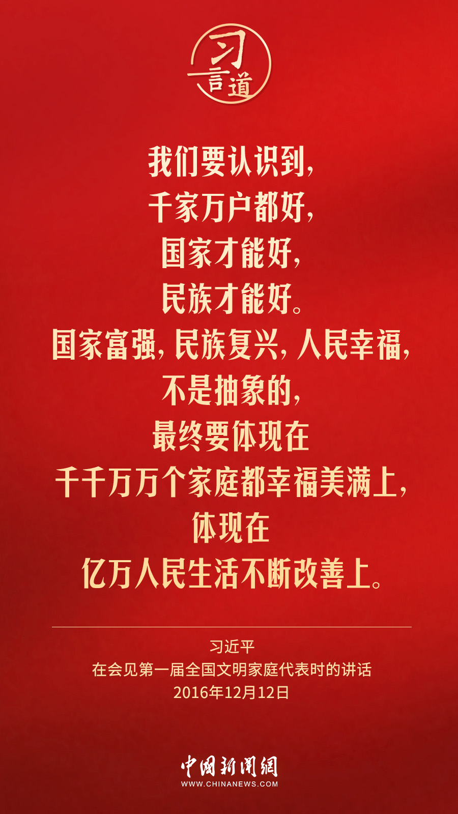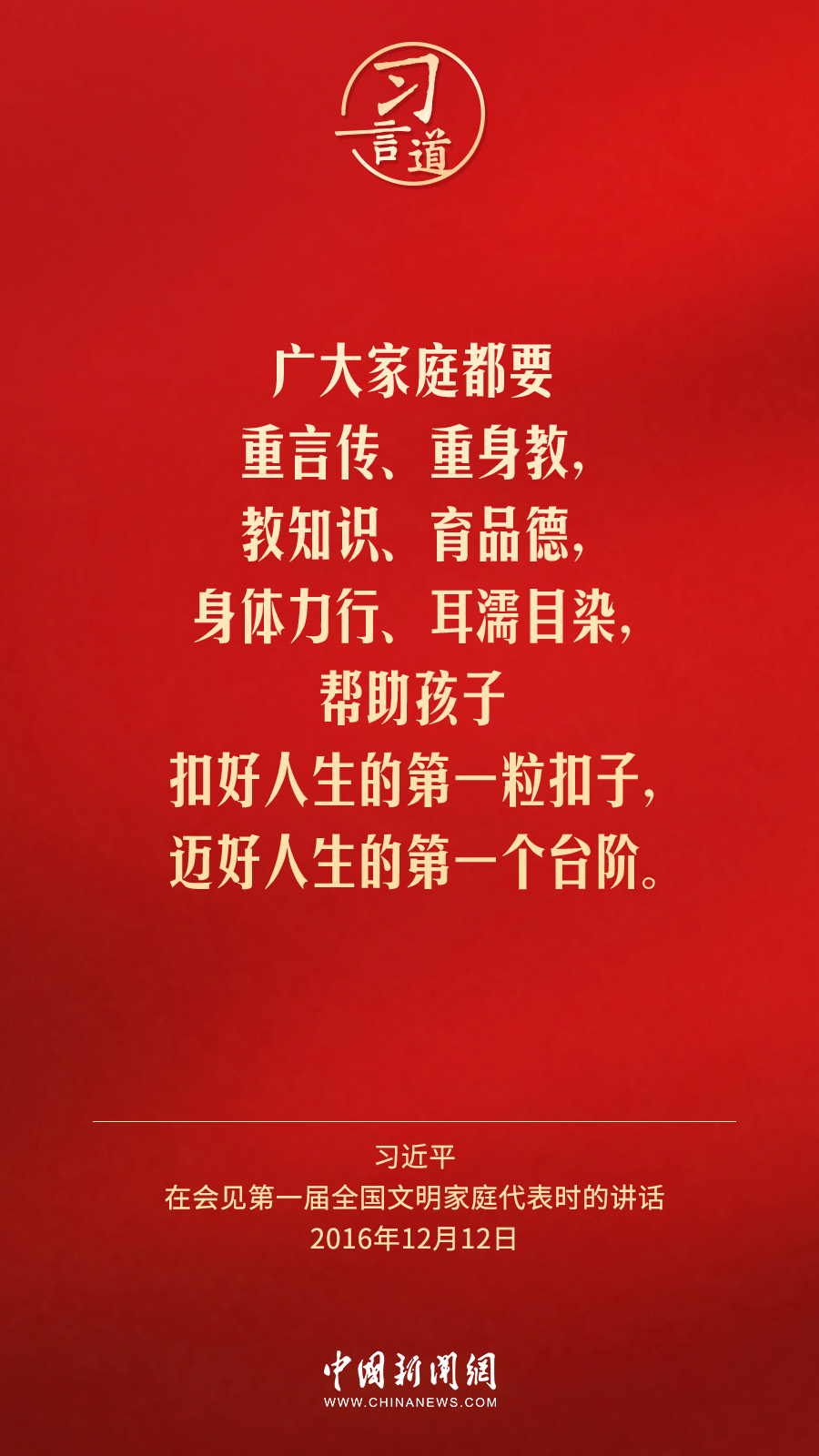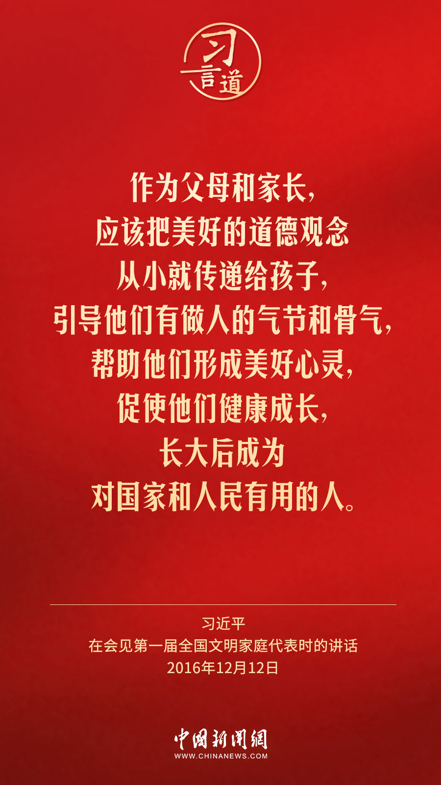 2月1日出版的《求是》雜志發(fā)表中共中央總書記、國家主席、中央軍委主席習(xí)近平2016年12月12日在會見第一屆全國文明家庭代表時講話的一部分《注重家庭,注重家教,注重家風(fēng)》。