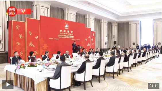 2月7日中午,國家主席習(xí)近平和夫人彭麗媛在黑龍江省哈爾濱市太陽島賓館舉行宴會,歡迎來華出席哈爾濱第九屆亞洲冬季運(yùn)動會開幕式的國際貴賓。