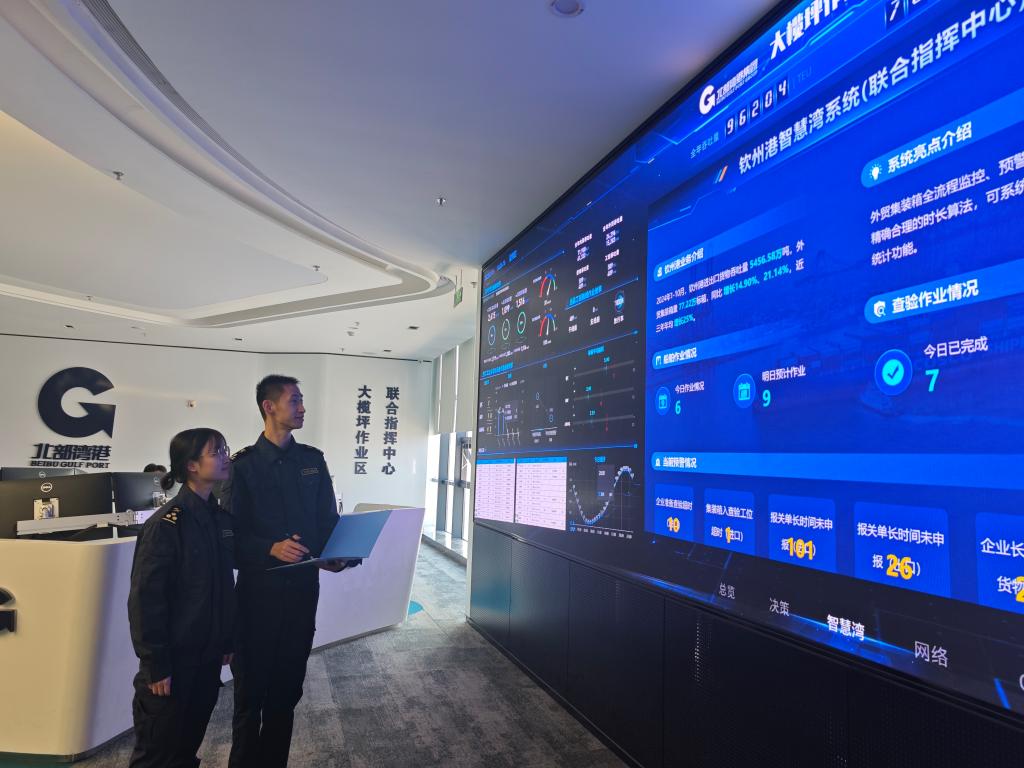 在上線“智慧灣”系統(tǒng)基礎(chǔ)上,海關(guān)與港口物流、報(bào)關(guān)、鐵路等各方打破數(shù)據(jù)信息壁壘,共同破解通關(guān)堵點(diǎn)難點(diǎn)問題。2024年,欽州港口岸總體集疏運(yùn)效率提升約25%。