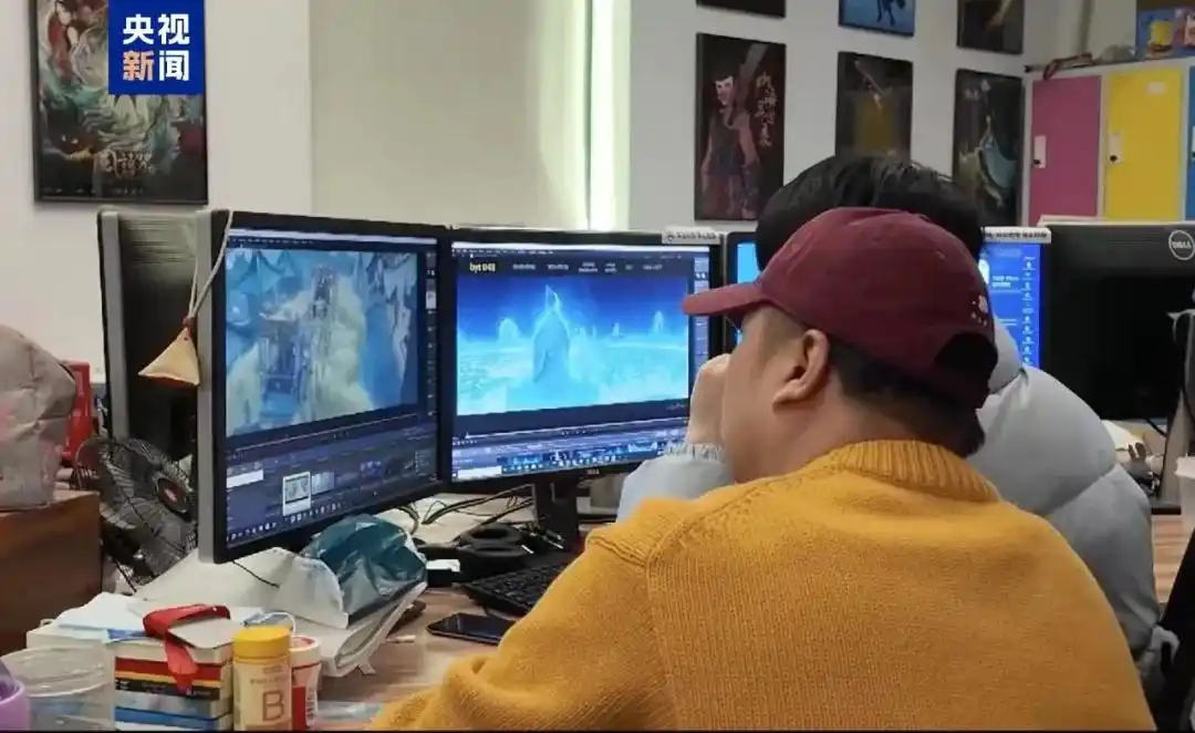 《哪吒2》壯觀的特效背后,是全國(guó)138家動(dòng)畫公司的合力托舉。圖為創(chuàng)作團(tuán)隊(duì)正在確認(rèn)畫面效果。