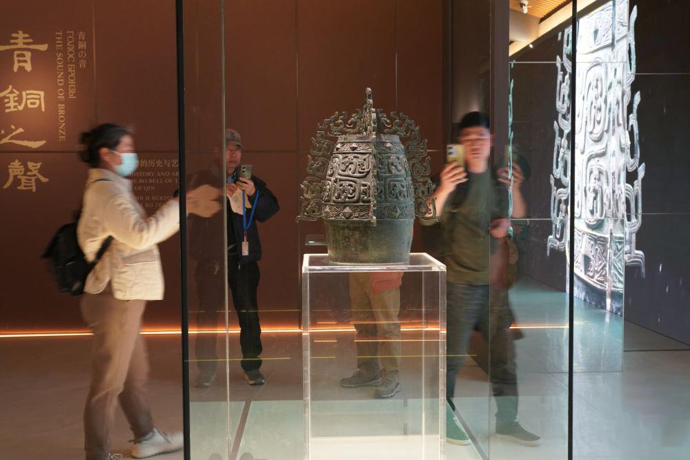 2月26日,游客在西部機(jī)場(chǎng)博物館珍寶館內(nèi)參觀國(guó)家一級(jí)文物“秦公镈”。