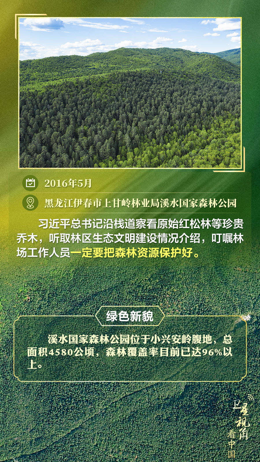 通過衛(wèi)星視角,一起俯瞰總書記去過的這些林區(qū),重溫總書記對造林護(hù)林的殷殷囑托,感受綠色新貌。
