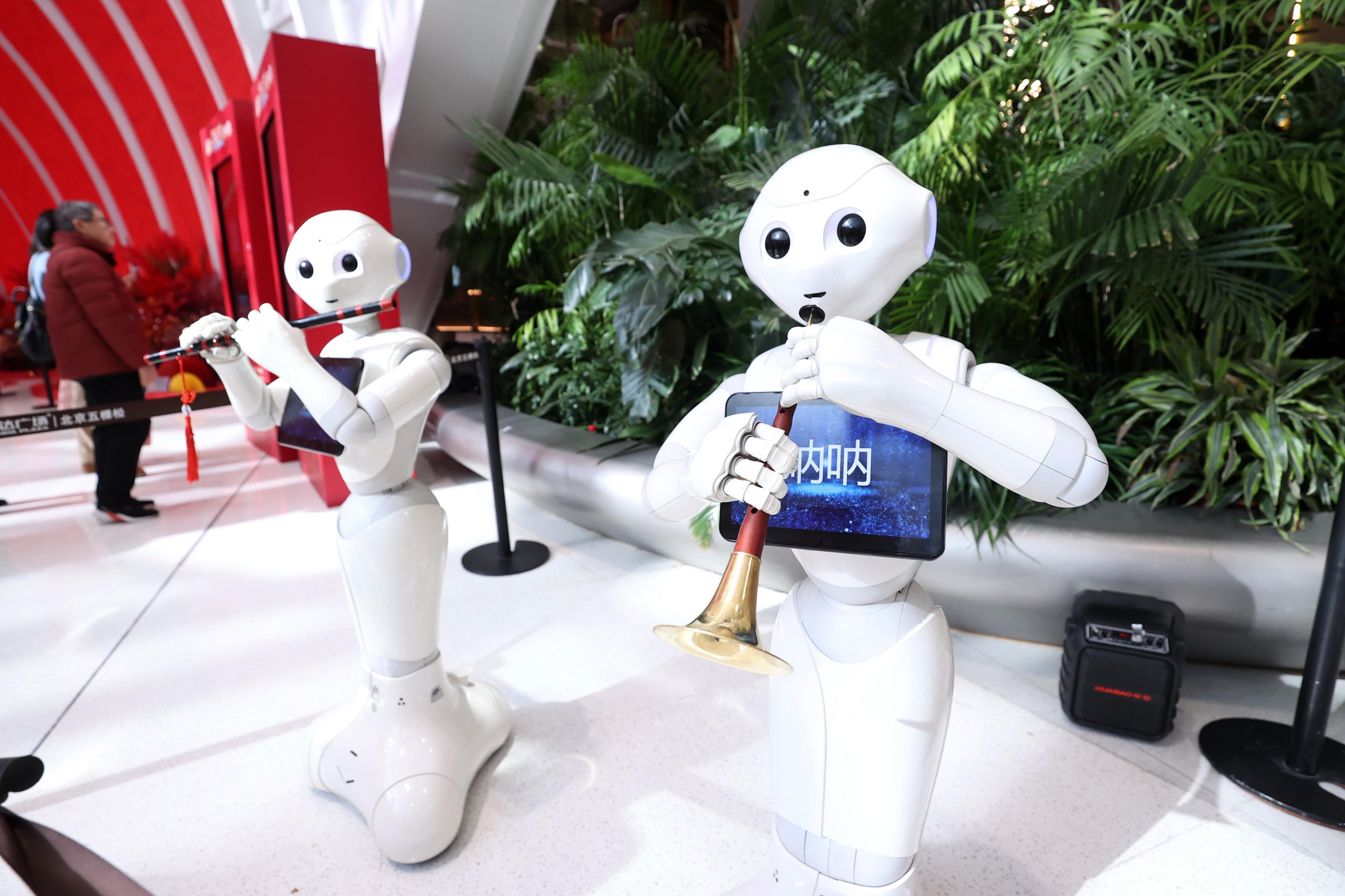 2025年2月2日,機器人在北京海淀新春科技廟會上表演。