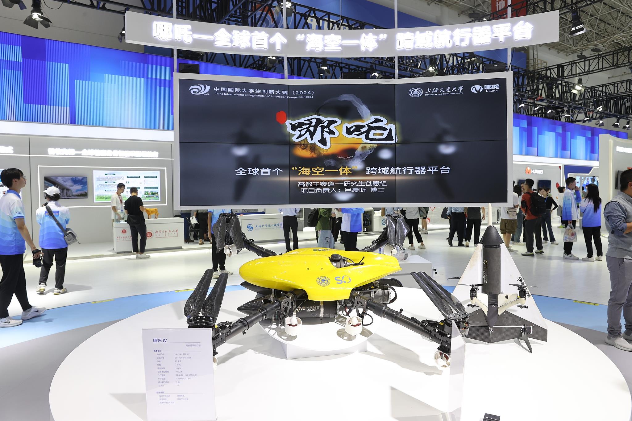 2024年10月12日至15日,中國國際大學生創(chuàng)新大賽總決賽及同期活動在上海舉行。來自上海交通大學的“哪吒——全球首個‘??找惑w’跨域航行器平臺”項目奪得冠軍。