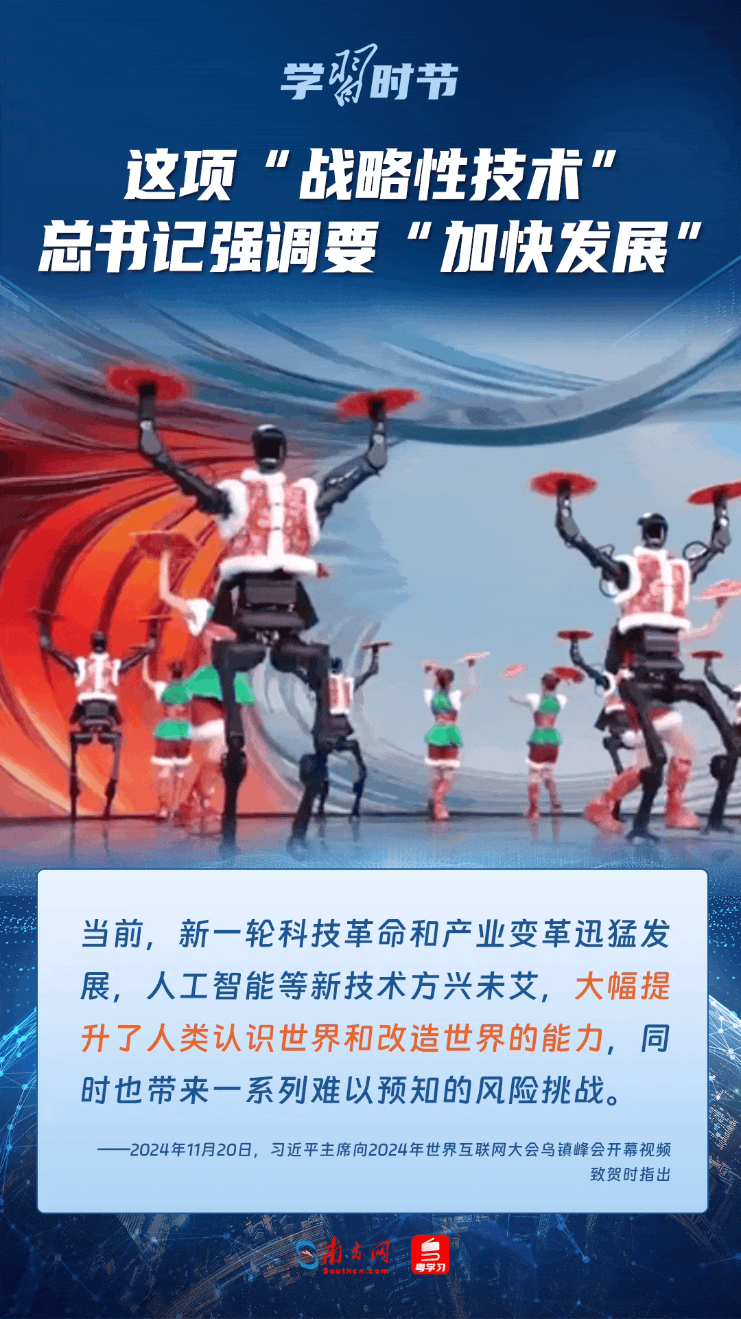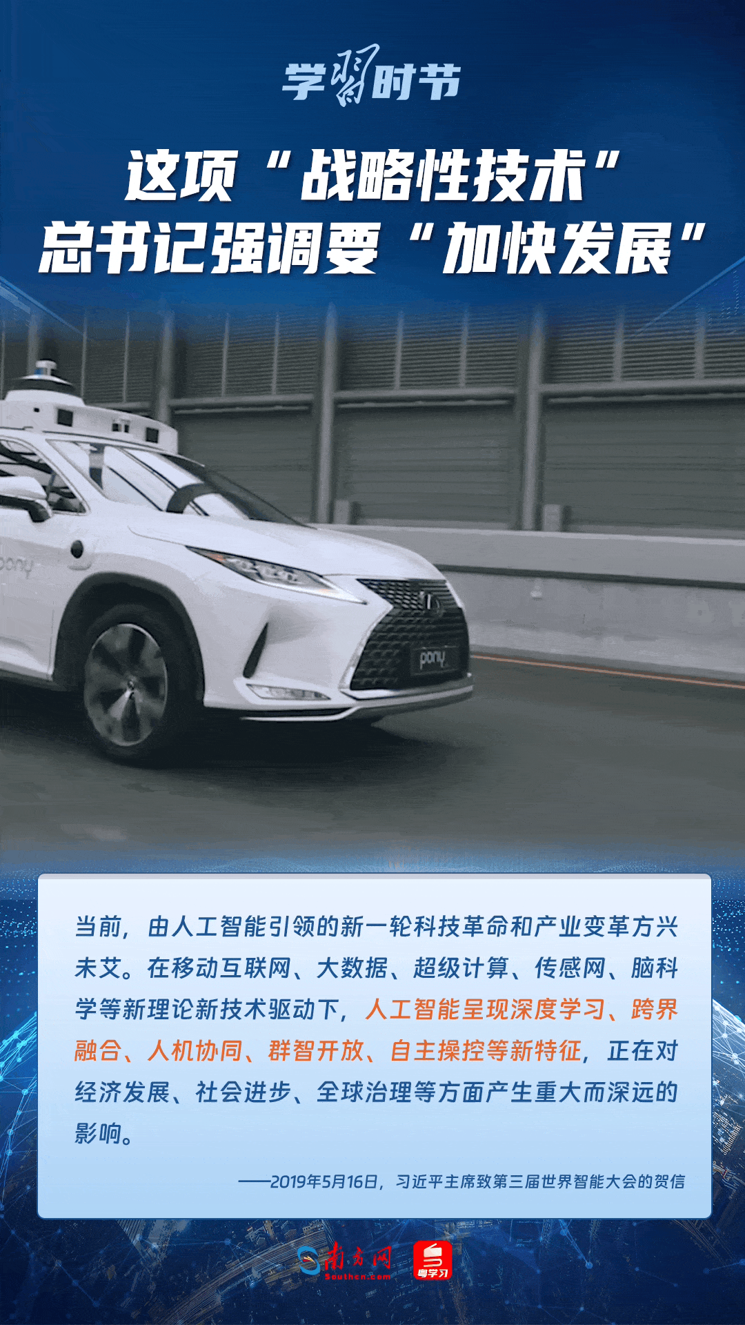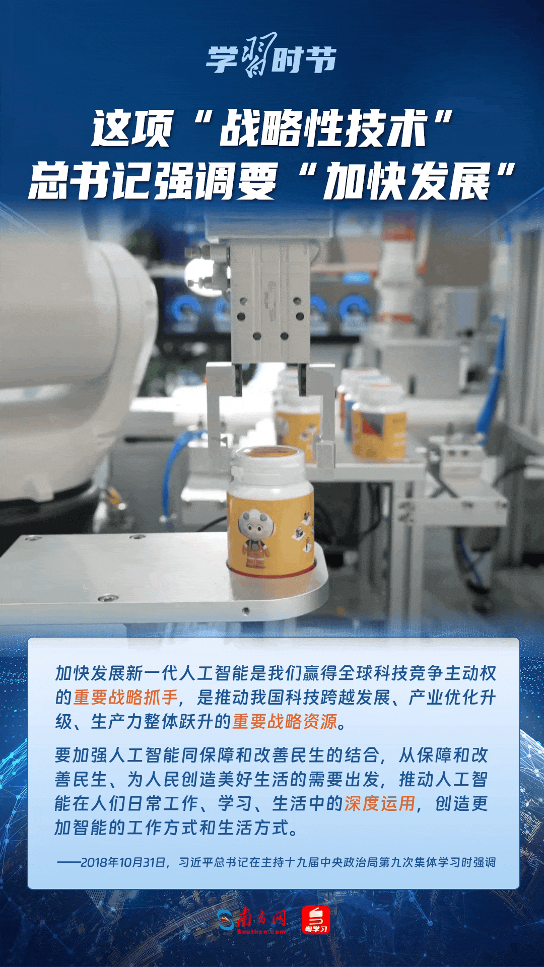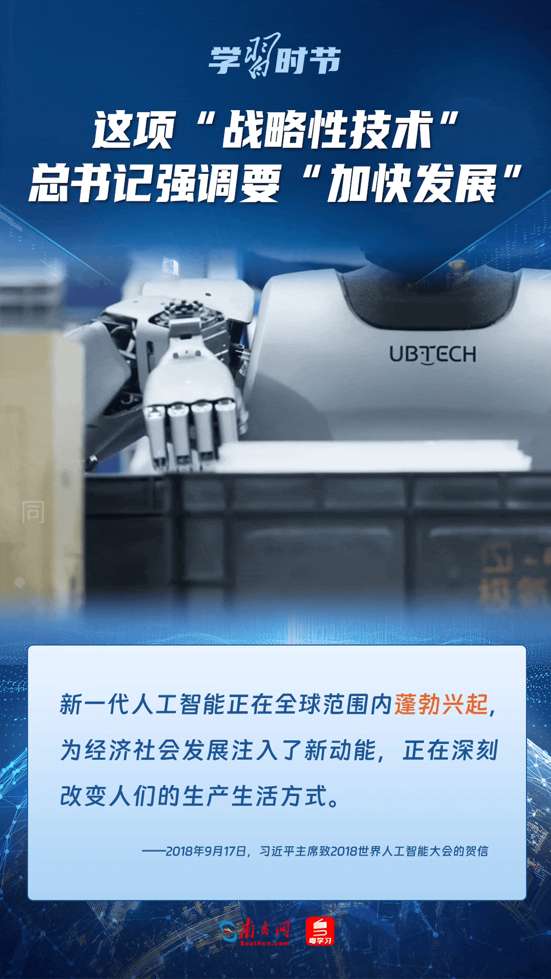 人工智能是引領(lǐng)科技革命和產(chǎn)業(yè)變革的戰(zhàn)略性技術(shù)。黨的十八大以來,習(xí)近平總書記把創(chuàng)新擺在國家發(fā)展全局的核心位置,高度重視人工智能發(fā)展,多次談及這項(xiàng)“戰(zhàn)略性技術(shù)”,強(qiáng)調(diào)要“加快發(fā)展”,為人工智能賦能千行百業(yè)指明方向。讓我們一起來學(xué)習(xí)總書記關(guān)于人工智能的重要論述!